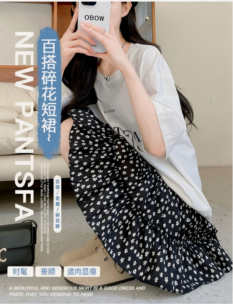韓系百搭碎花蛋糕裙,誰穿誰好看